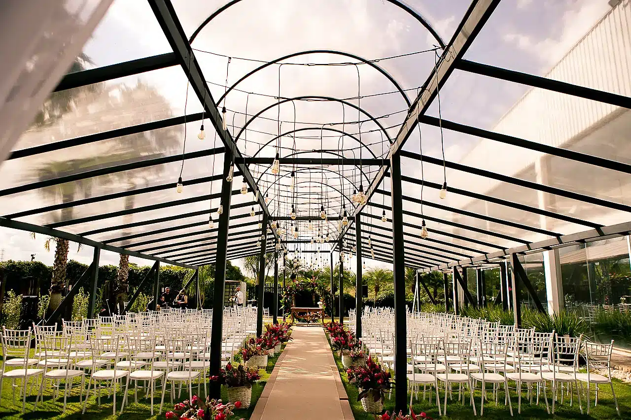 Fique tranquilo! O Garden possui cobertura, garantindo conforto e a continuidade da cerimônia ou recepção, mesmo em caso de chuva.
